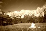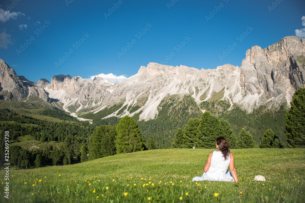 White dressed woman at the Dolomites