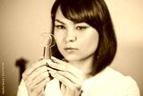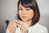 Doctor ophthalmologist holding lenses to check patient's vision. focus on lens, face is in soft focus. Concept - medical examination.