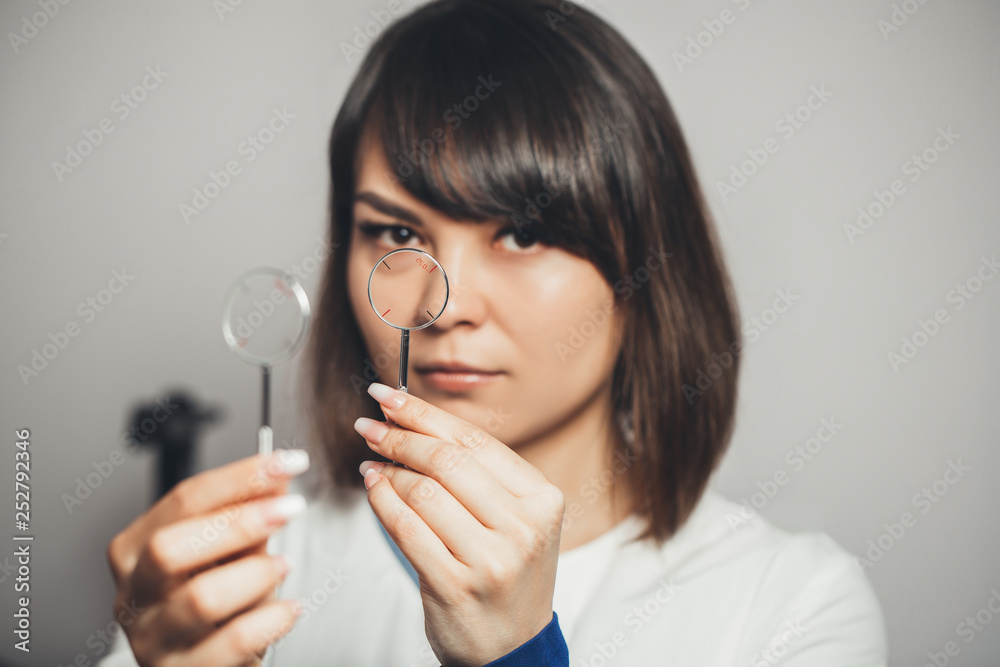 ophthalmologist holds lenses in his hands to check his vision. vision correction in clinic.