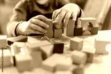 a child plays with colored wooden blocks at home.kid plays and builds buildings and towers with wooden colored blocks.