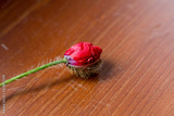 Beautiful unopened poppy Bud is on the table. Soft focus.