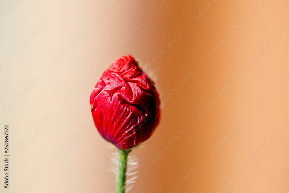 Beautiful unblown poppy Bud. Soft focus. Free space