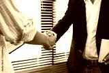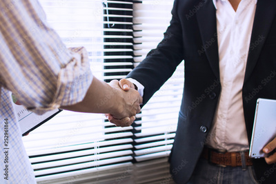 successful negotiate and deal concept, shake hands and business people in offce