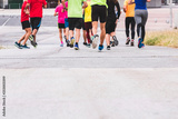 Marathon runners People Race to finish line Outdoor sport training exercise
