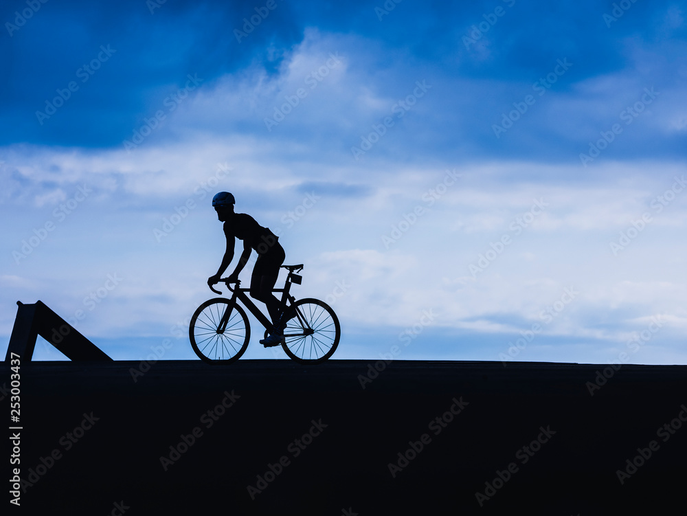 Silhouette man on bicycle Cyclist fix gear riding outdoor