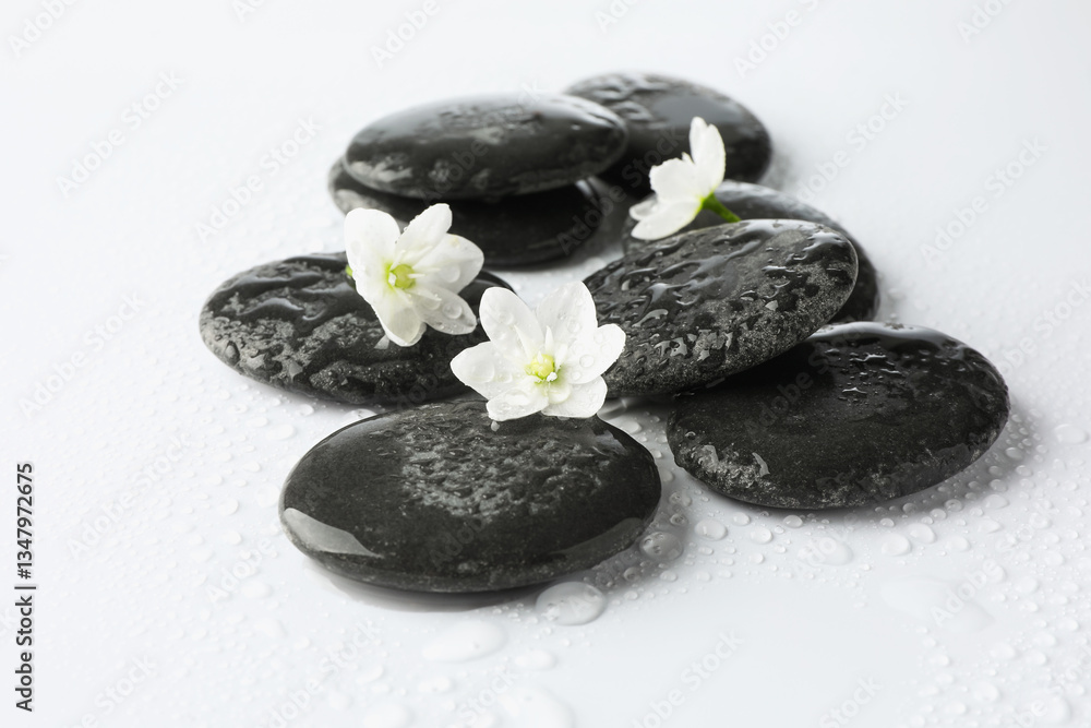 Beautiful spring nature background with butterfly, lovely blossom, petal a on turquoise blue background , top view, frame. Springtime concept.