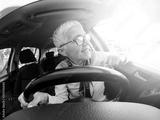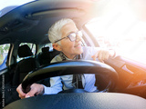 Happy woman driving a car