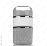 Food carrier. Lunch box stacked for picnic. Bento container. Tiffin food carrier. Plastic and stainless steel food storage container. Home cooked food carrier delivery service for office worker.