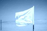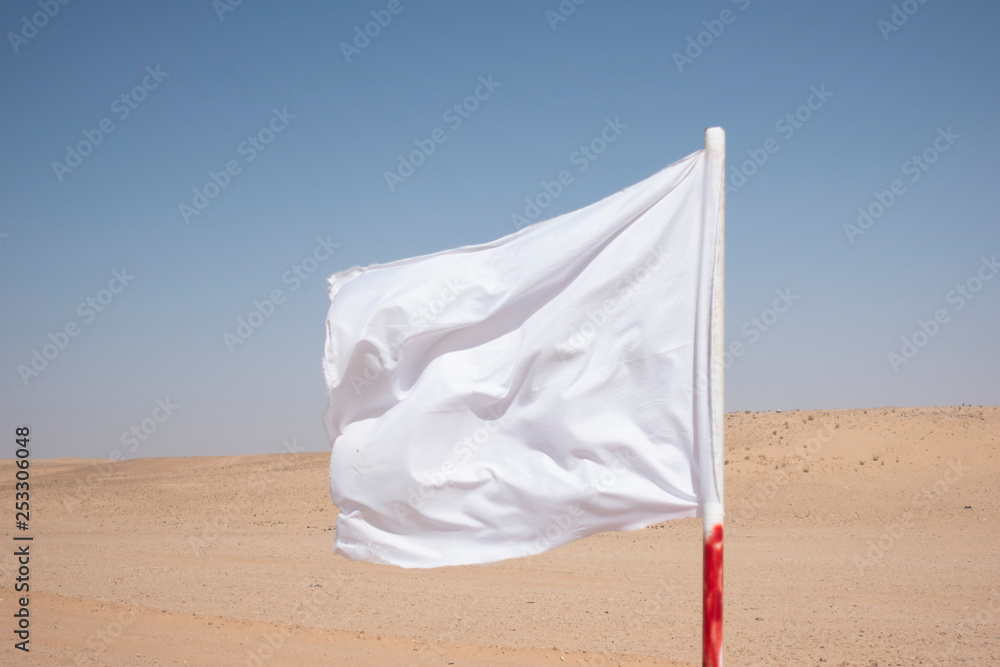 A white flag waving in the desert.