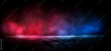 Wet asphalt, reflection of neon lights, a searchlight, smoke. Abstract light in a dark empty street with smoke, smog. Dark background scene of empty street, night view, night city.