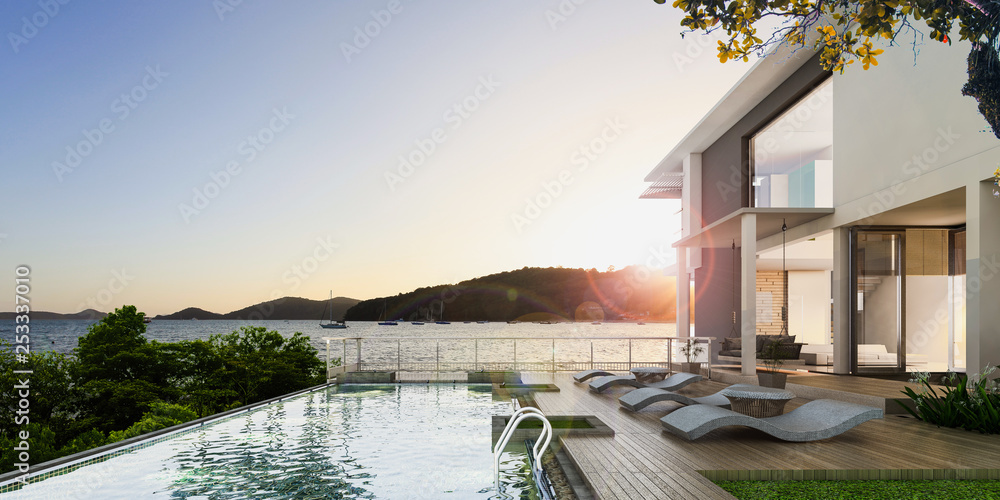 Sea view swimming pool in modern loft design,Luxury ocean Beach house