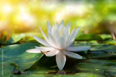 Closse up of lotus, water lily flower with soft bokeh and sun light