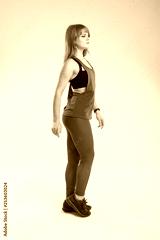 Side profile view of fitness woman in sport style clothes. Beautiful young sporty fitness model. Strong woman.