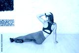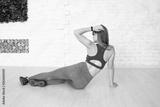 Back view of sporty woman. Sporty woman in sport style clothes on floor