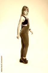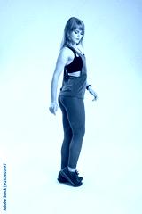 Beautiful young sporty fitness model. Side profile view of fitness woman in sport style clothes.