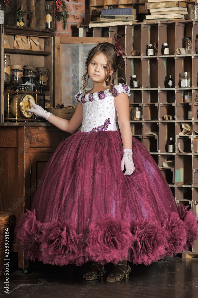 Vintage portrait of little girl in purple dress