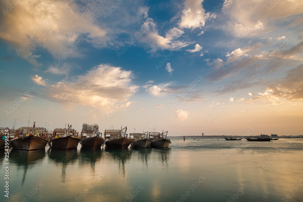 Tradional dhows in a calm water in Wakra port QatarTradional dhows in a calm water in Wakra port Qatar