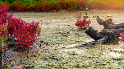 Seablite (Sueda maritima) growth in acid soil. Acid soil indicator plants. Pink Seablite. Acid loving plants. Valentine's day background. Exotic plant with pink leaves.
