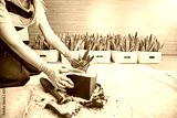 Gardening - Set Of Tools For Gardener And Flowerpots In Sunny Garden