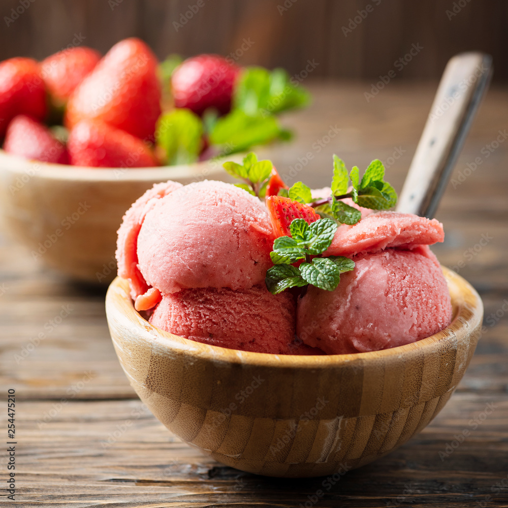 Summer ice cream with strawerry and mint