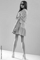 Female Model in a Dress Posing in Studio with Neutral Background – Minimal Fashion Look