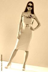 Female Model Posing in Studio with Neutral Background – Minimal Fashion Look. Fashion editorials, model portfolios, advertising mockups, or minimalist beauty and lifestyle concepts.