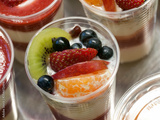 Fresh tasty dessert in a cup closeup, healthy food macro