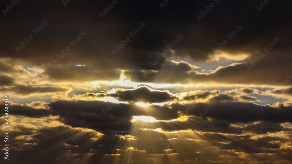 Blue sky and dark clouds with sunlight