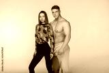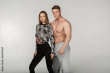 Athletic shirtless man and sporty woman in stylish sportswear