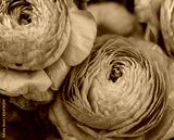 Beautiful orange herbaceous peony. Сlose up view of Ranunculus aka buttercup flower, exquisite, with a rose-like blossoms. Persian buttercup
