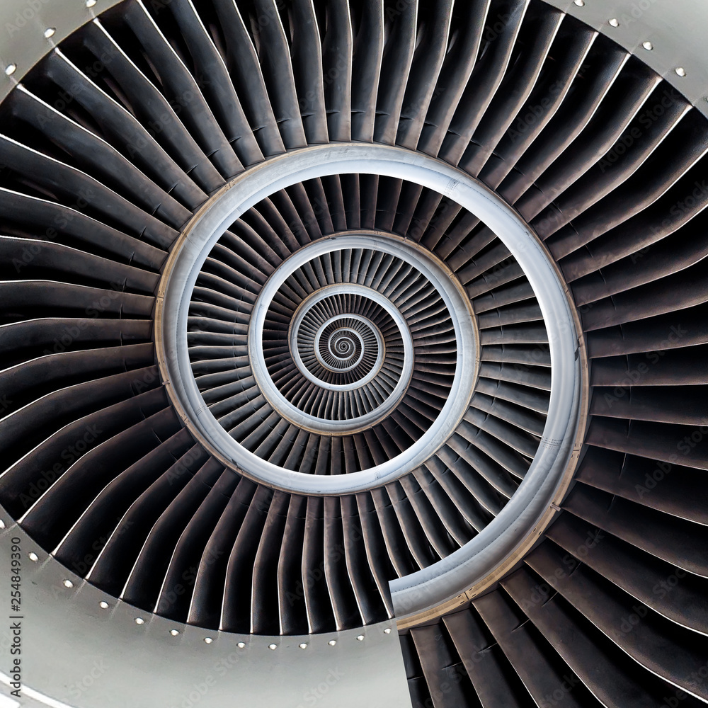 Air plane engine spiral abstract background. Engine fractal background. Industrial infinity spiral surreal abstract image.