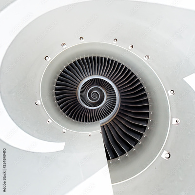 Air plane engine spiral abstract background. Engine fractal background. Industrial infinity spiral surreal abstract image.