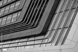 Modern and unusual architecture from metal and glass. Non-standard forms and decisions. Lines and geometry of the big building.
