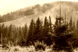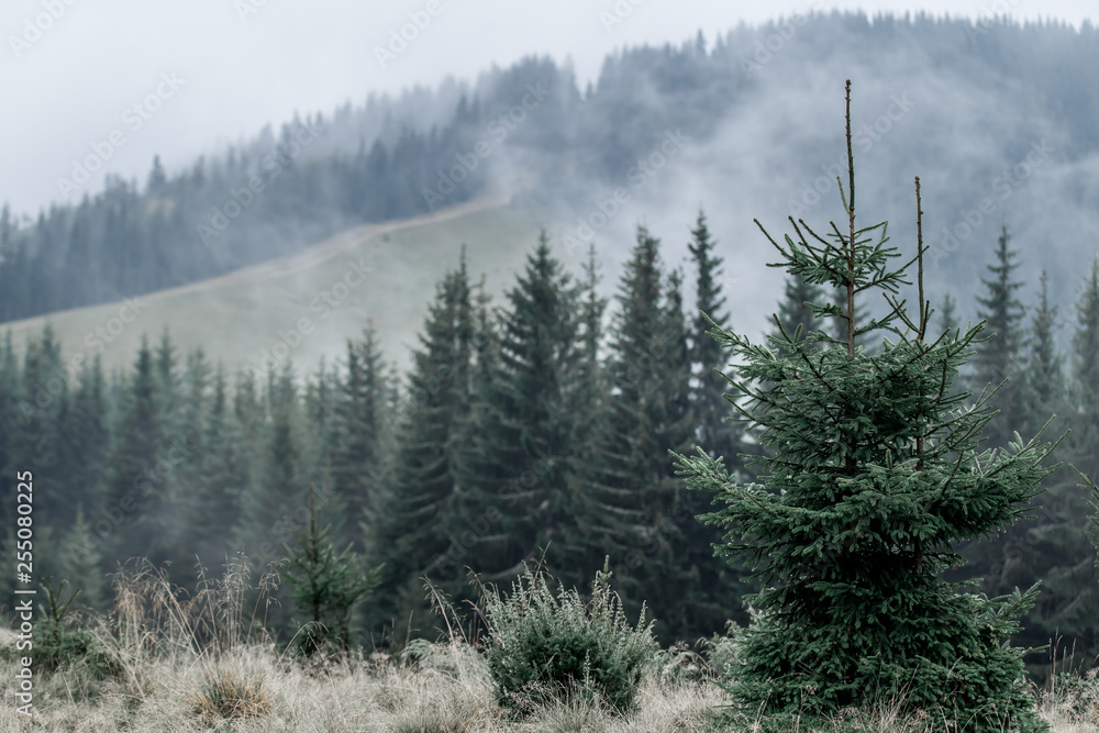 Misty forest in the mountains