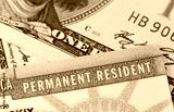 USA Permanent Resident card aka Green Card and paper money