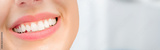 Young woman. Smiling mouth with white teeth. Closeup. Front view. Dental banner. Empty place for text, quote, saying or logo.