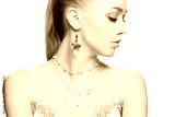Beautiful female face, profile. Attractive woman with gold jewelry isolated on white background
