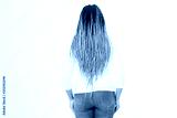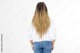Closeup woman dreadlocks and afro braids. African american girl hair style back rear view isolated on white background. Hairstyle and hair care concept. Copy space