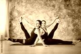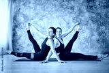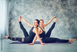 Portrait of attractive woman doing exercises. Brunette with fit body on yoga mat.