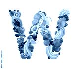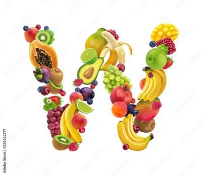 Letter W made of different fruits and berries, fruit alphabet isolated on white background