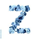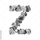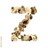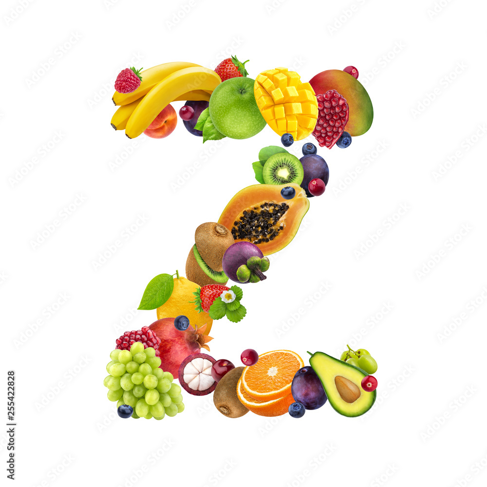 Letter Z made of different fruits and berries, fruit alphabet isolated on white background