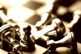 Idea strategy and confidential competition business concept, King chess pieces on board