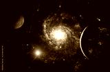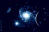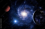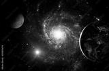 Planets of the solar system against the background of a spiral galaxy in space. Elements of this image furnished by NASA.