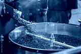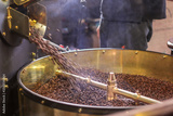 Freshly roasted aromatic coffee beans in a modern coffee roasting machine