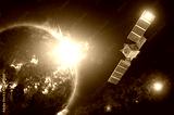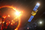 Space exploration satellite to monitor the actinicity of a Sun star. Fixed a powerful flash on the surface of the photosphere with dark spots. Elements of this image are furnished by NASA.