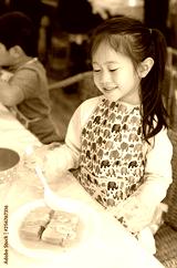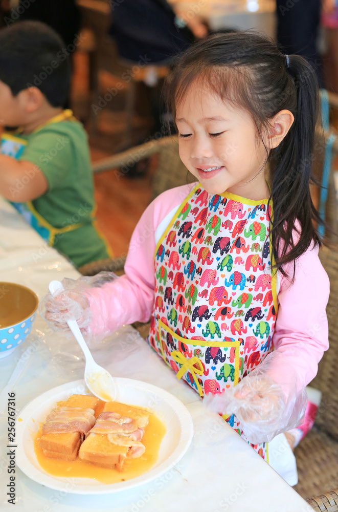 Little Chef making in process French toast bacon.