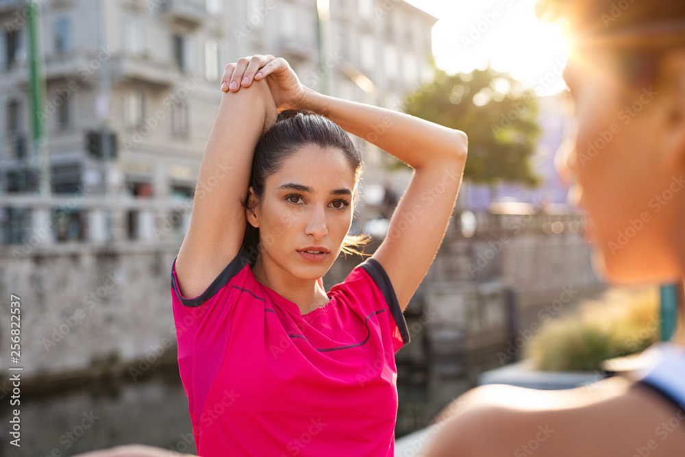 Woman stretching arms over head