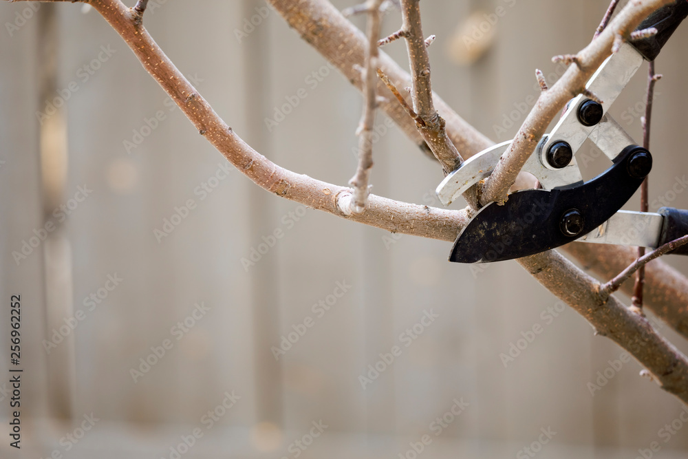 Pruning tree branches early in spring