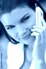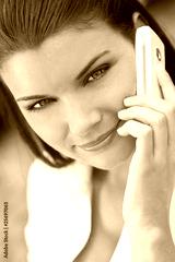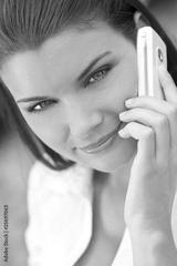 Beautiful Young Woman With Green Eyes On Cell Phone