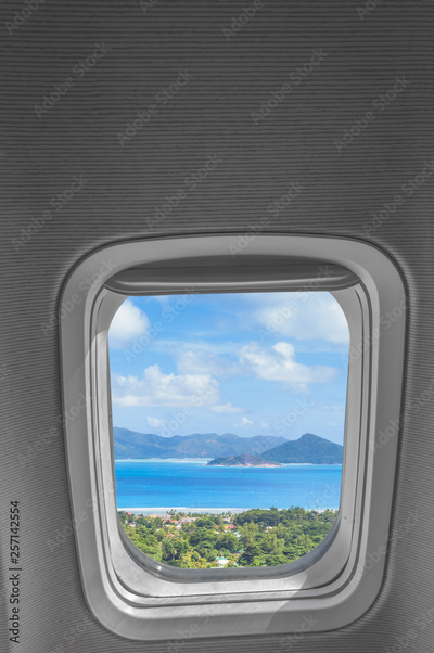 Les Seychelles, la Digue et Praslin vu à travers hublot d’avion